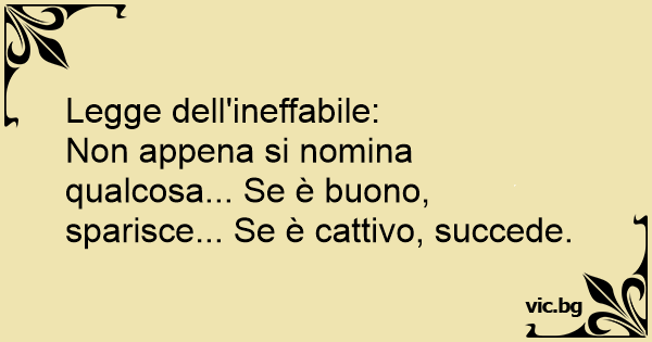 Non appena si nomina qualcosa... Se è buono, sparisce... Se è cattivo, succede.