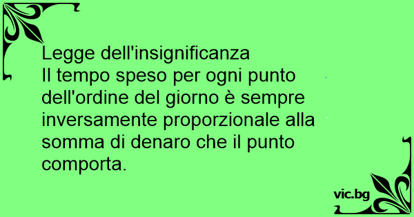 Il tempo speso per ogni punto dell'ordine del giorno è sempre inversamente proporzionale alla somma di denaro che il punto comporta.