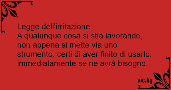 A qualunque cosa si stia lavorando, non appena si mette via uno strumento, certi di aver finito di usarlo, immediatamente se ne avrà bisogno.