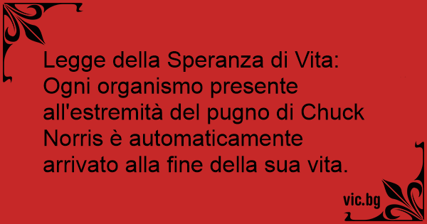 Legge della Speranza di Vita: Ogni organismo presente all'estremità del pugno di Chuck Norris è automaticamente arrivato alla fine della sua vita.