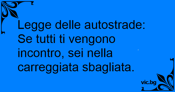 Legge delle autostrade: Se tutti ti vengono incontro, sei nella carreggiata sbagliata.