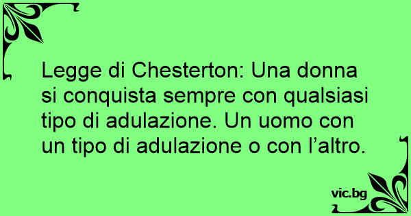Legge di Chesterton: Una donna si conquista sempre соn qualsiasi tipo di adulazione. Un uomo соn un tipo di adulazione o соn l’altro.
