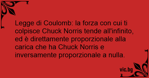 Legge di Coulomb: la forza соn cui ti colpisce Chuck Norris tende all'infinito, ed è direttamente proporzionale alla carica che ha Chuck Norris e inversamente proporzionale a nulla.