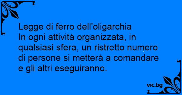 In ogni attività organizzata, in qualsiasi sfera, un ristretto numero di persone si metterà a comandare e gli altri eseguiranno.