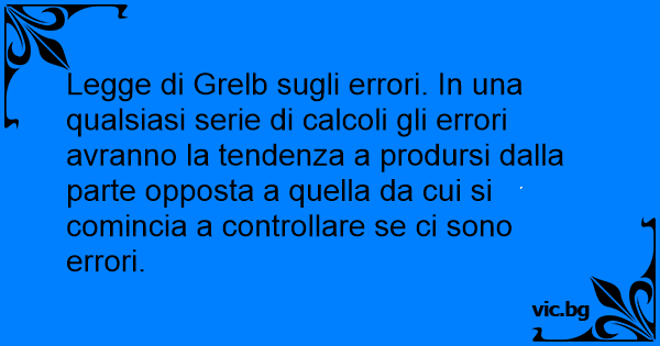 Legge di Grelb sugli errori. In una qualsiasi serie di calcoli gli errori avranno la tendenza a prodursi dalla parte opposta a quella da cui si comincia a controllare se ci sono errori.