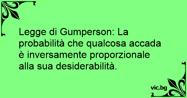 Legge di Gumperson: La probabilità che qualcosa accada è inversamente proporzionale alla sua desiderabilità.