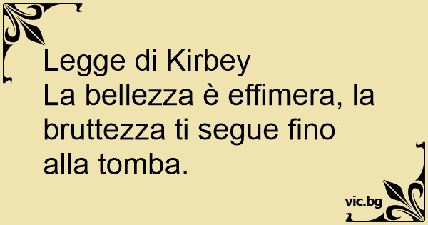 Legge di Kirbey<br />La bellezza è effimera, la bruttezza ti segue fino alla tomba.