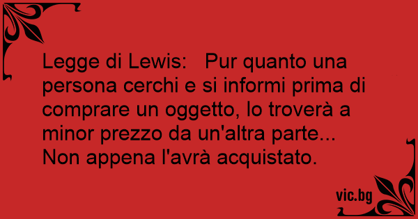 Legge di Lewis: Pur quanto una persona cerchi e si informi prima di comprare un oggetto, lo troverà a minor prezzo da un'altra parte... Non appena l'avrà acquistato.