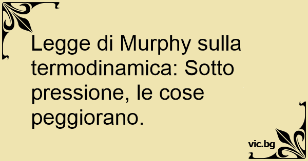 Legge di Murphy sulla termodinamica: Sotto pressione, le cose peggiorano.