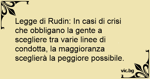 Legge di Rudin: In casi di crisi che obbligano la gente a scegliere tra varie linee di condotta, la maggioranza sceglierà la peggiore possibile.