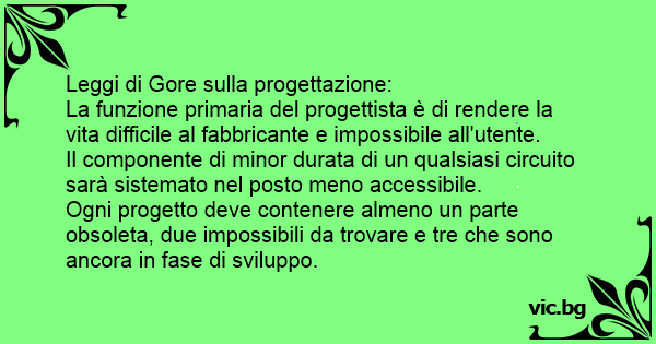 La funzione primaria del progettista è di rendere la vita difficile al fabbricante e impossibile all'utente.