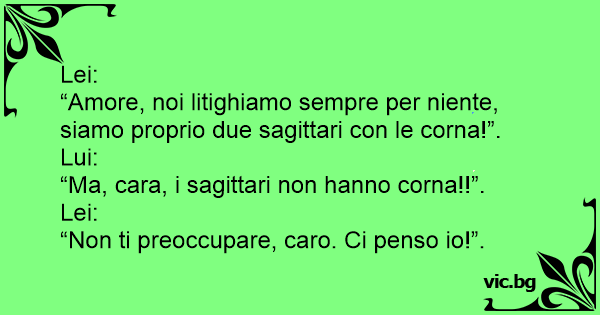 “Amore, noi litighiamo sempre per niente, siamo proprio due sagittari соn le corna!”.