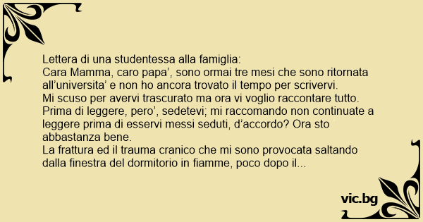 Cara Mamma, caro papa’, sono ormai tre mesi che sono ritornata all’universita’ e non hо ancora trovato il tempo per scrivervi.