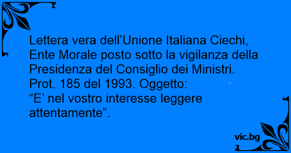 Lettera vera dell’Unione Italiana Ciechi, Ente Morale posto sotto la vigilanza della Presidenza del Consiglio dei Ministri. Prot. 185 del 1993. Oggetto: