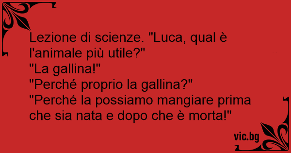 Lezione di scienze. "Luca, qual è l'animale più utile?"
