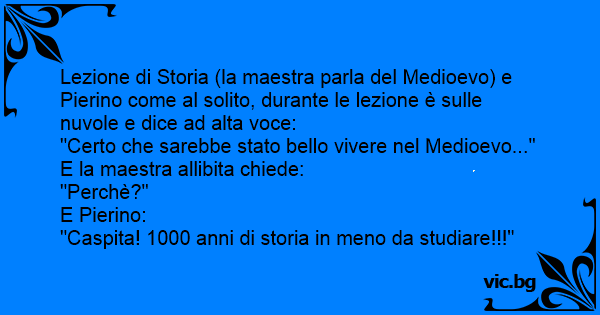 Lezione di Storia (la maestra parla del Medioevo) e Pierino come al solito, durante le lezione è sulle nuvole e dice ad alta voce: