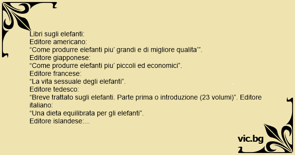 “Breve trattato sugli elefanti. Parte prima o introduzione (23 volumi)”. Editore italiano: