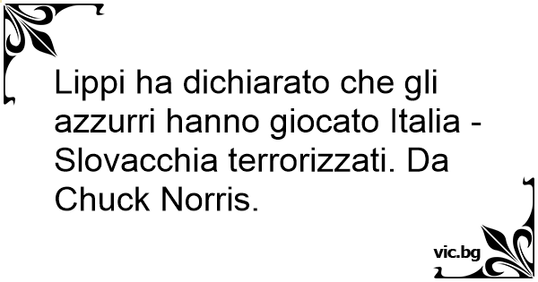 Lippi ha dichiarato che gli azzurri hanno giocato Italia - Slovacchia terrorizzati. Da Chuck Norris.