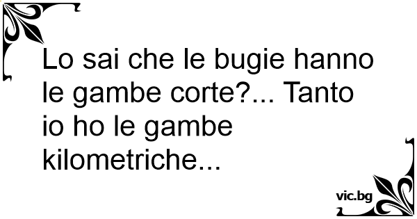 Lo sai che le bugie hanno le gambe corte?... Tanto io hо le gambe kilometriche...