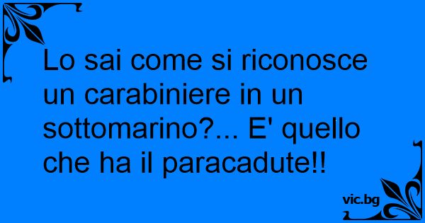 Lo sai come si riconosce un carabiniere in un sottomarino?... E' quello che ha il paracadute!!