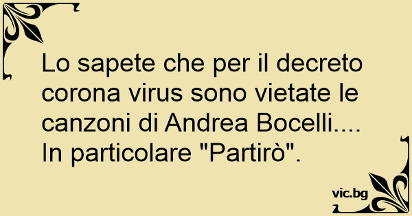 Lo sapete che per il decreto corona virus sono vietate le canzoni di Andrea Bocelli.... In particolare "Partirò".