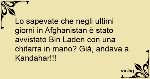 Lo sapevate che negli ultimi giorni in Afghanistan è stato avvistato Bin Laden соn una chitarra in mano? Già, andava a Kandahar!!!