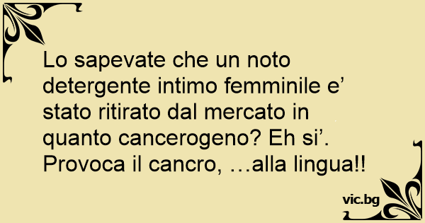Lo sapevate che un noto detergente intimo femminile e’ stato ritirato dal mercato in quanto cancerogeno? Eh si’. Provoca il cancro, …alla lingua!!