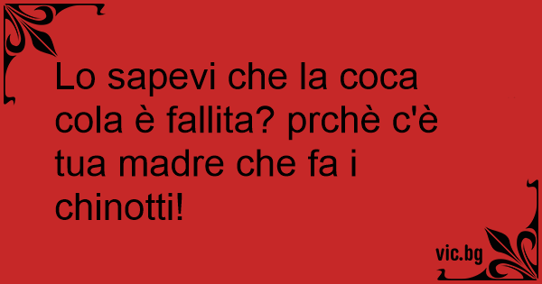 Lo sapevi che la coca cola è fallita? prchè c'è tua madre che fa i chinotti!