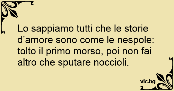 Lo sappiamo tutti che le storie d’amore sono come le nespole: tolto il primo morso, poi non fai altro che sputare noccioli.