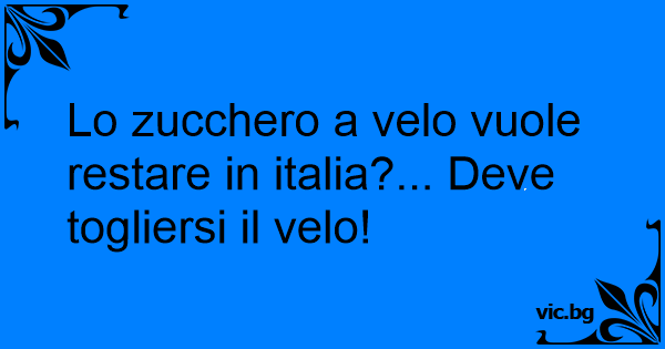 Lo zucchero a velo vuole restare in italia?... Deve togliersi il velo!