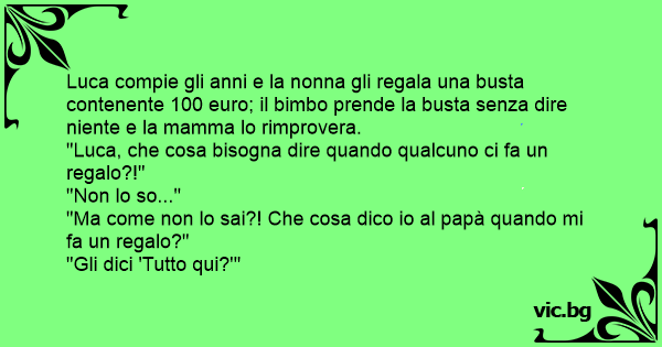 Luca compie gli anni e la nonna gli regala una busta contenente 100 euro; il вiмво prende la busta senza dire niente e la mamma lo rimprovera.