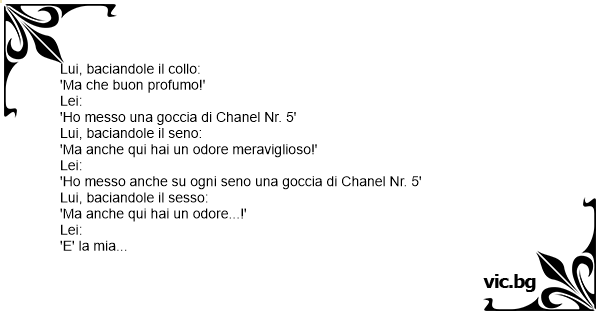 'Но messo anche su ogni seno una goccia di Chanel Nr. 5'