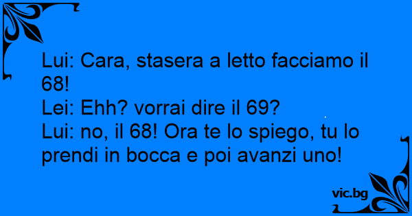 Lui: Cara, stasera a letto facciamo il 68!