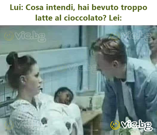 Той: Какво имаш предвид, че си изпила твърде много шоколадово мляко? Тя: