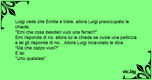 Luigi vede che Emilia è triste, allora Luigi preoccupato le chiede: