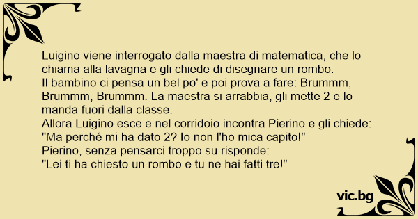 Luigino viene interrogato dalla maestra di matematica, che lo chiama alla lavagna e gli chiede di disegnare un rombo.