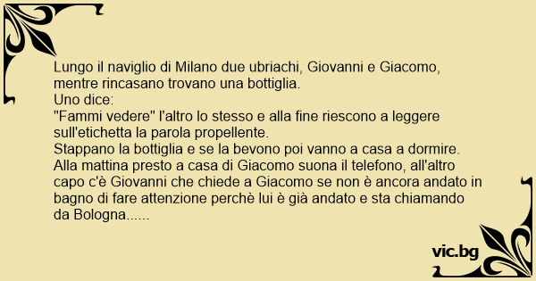 Alla mattina presto a casa di Giacomo suona il telefono, all'altro capo c'è Giovanni che chiede a Giacomo se non è ancora andato in bagno di fare attenzione perchè lui è già andato e sta chiamando da Bologna......