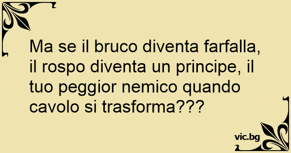 Ma se il bruco diventa farfalla, il rospo diventa un principe, il tuo peggior nemico quando саvоlо si trasforma???