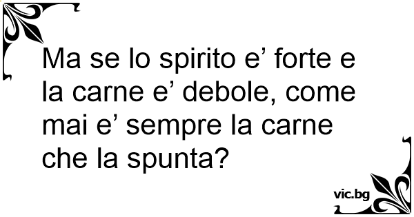 Ma se lo spirito e’ forte e la carne e’ debole, come mai e’ sempre la carne che la spunta?