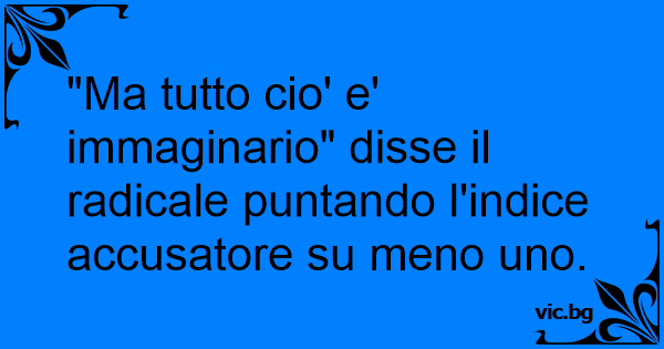"Ma tutto cio' e' immaginario" disse il radicale puntando l'indice accusatore su meno uno.