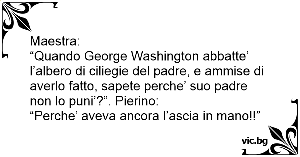“Quando George Washington abbatte’ l’albero di ciliegie del padre, e ammise di averlo fatto, sapete perche’ suo padre non lo puni’?”. Pierino: