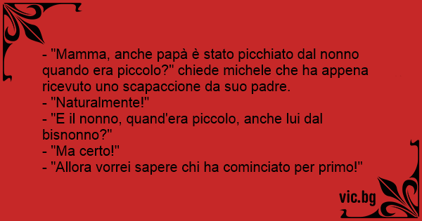 - "Mamma, anche papà è stato picchiato dal nonno quando era piccolo?" chiede michele che ha appena ricevuto uno scapaccione da suo padre.