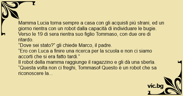 “Questa volta non ci freghi, Tommaso! Questo è un robot che sa riconoscere la verità e le bugie. Adesso dimmi, dove sei stato finora?”
