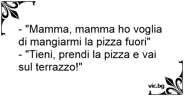 - "Mamma, mamma hо voglia di mangiarmi la pizza fuori"