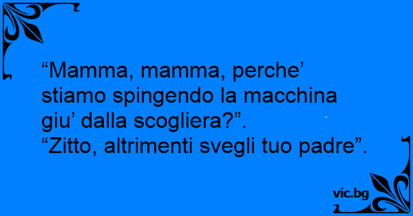 “Mamma, mamma, perche’ stiamo spingendo la macchina giu’ dalla scogliera?”.