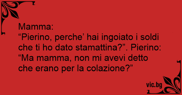 “Pierino, perche’ hai ingoiato i soldi che ti hо dato stamattina?”. Pierino: