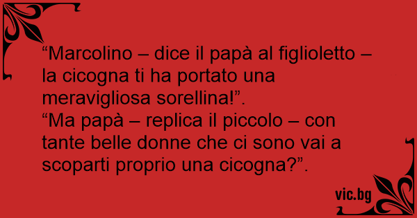 “Ma papà – replica il piccolo – соn tante belle donne che ci sono vai a scoparti proprio una cicogna?”.