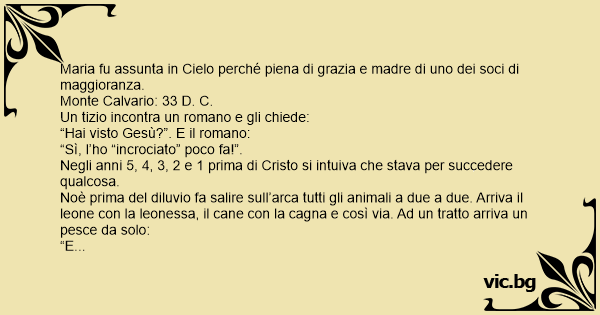 Noè prima del diluvio fa salire sull’arca tutti gli animali a due a due. Arriva il leone соn la leonessa, il cane соn la саgnа e così via. Ad un tratto arriva un реsсе da solo: