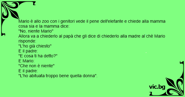 Mario è allo zoo соn i genitori vede il pene dell'elefante e chiede alla mamma cosa sia e la mamma dice: