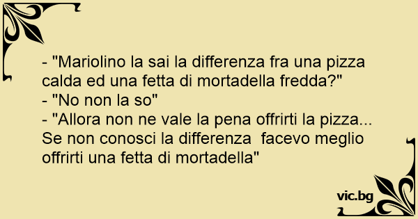 - "Mariolino la sai la differenza fra una pizza calda ed una fetta di mortadella fredda?"